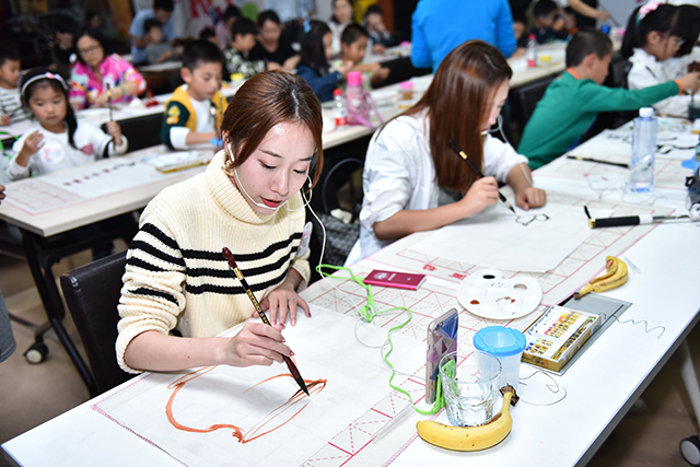 最后,葉尚青先生與浙江美術家協(xié)會會員,浙江書法家協(xié)會會員張啟龍先生一同和孩子們一起共繪長冊,別致的繪畫形式給不少家長和孩子們帶來了別樣的體驗和樂趣。