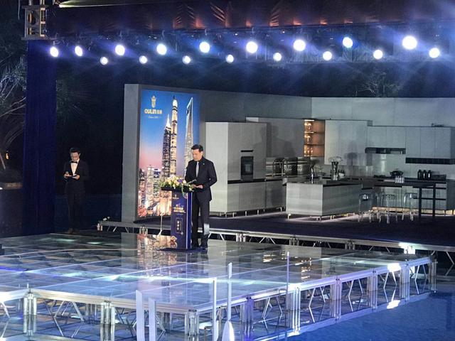 而受邀前來的近百余名嘉賓圍繞著燈光閃爍的泳池,與歐琳集團首席設計顧問曼萊克先生、歐琳集團董事長徐劍光先生及歐琳整體廚房總經理蔡勇先生共同見證了高端T系廚房的震撼亮相,同時享用著歐琳精心準備的冷餐美酒。